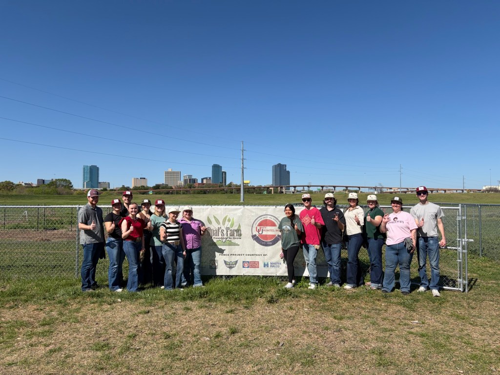 We were also blessed to have a group of college students from around the state and the Texas Farm Bureau come by on Saturday morning. Many of these folks have production farming experience so the amount of work and the initiative they brought to Opal’s on a Saturday morning was beyond amazing. Thanks to these young people our tomatoes are planted, most of the trellises up, and the beds are weed-free (at least until the next rain…). Thanks to Kyndal with the Texas Farm Bureau for putting all this together!
